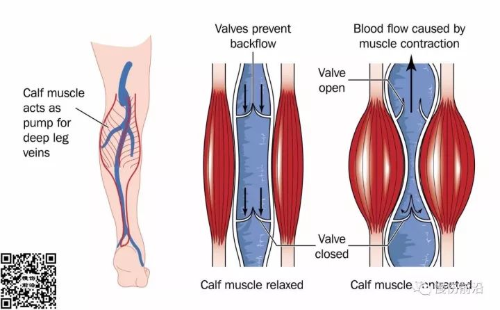 静脉系统的正常功能有赖于心脏肌肉泵、腓肠肌和足泵、以及静脉瓣。
