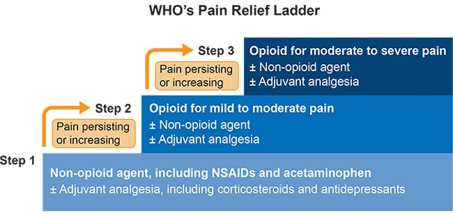 从治疗其他疾病所致的慢性疼痛中获得的经验可以用来指导持续伤口疼痛的治疗。WHO的癌症疼痛和慢性疼痛治疗“三步镇痛阶梯”(1996)是一种有效的方法。