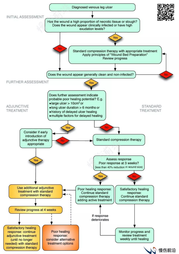临床工具:下肢静脉溃疡诊疗路径 2024-01-12 每个伤口治疗中心针对每一种伤口均应该有自己的诊疗路径和指导原则,今天给大家推送一份国外的下肢静脉溃疡诊疗路径,中英文对照,方便大家使用。 内容转载自@慢伤前沿公众号! 文章导览 上一篇文章压力性损伤预防中的体位变换 2024-01-12 下一篇文章慢性伤口患者疼痛的评估与管理 2024-01-11 评论 评论 取消 在此浏览器中保存我的显示名称、邮箱地址和网站地址,以便下次评论时使用。 这篇文章还没有任何评论。快来成为第一个评论者吧!