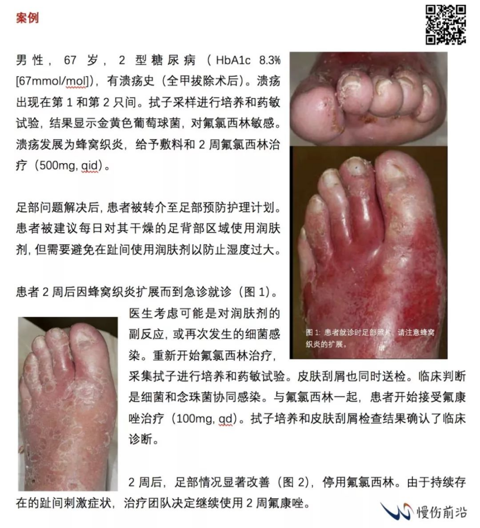糖尿病人足部真菌感染不应被忽视,因其可能在溃疡的发病机制中发挥作用。此外,文献建议其继发细菌感染的风险很高。治疗应尽早开始以防止扩散,给予预防性措施以防止感染和再感染。治疗必须包含对患者合病症和其他用药的仔细考虑。